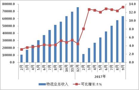 物流業轉型升級態勢明顯,供給體系的質量和效率穩步提升,部分重點細分領域加速發展。在互聯網+、消費升級的帶動下,相關的郵政快遞物流收入同比增長超過20%,增速比上半年提高0.4個百分點;隨著食品安全受到關注,冷鏈物流市場收入同比增長在9%左右。