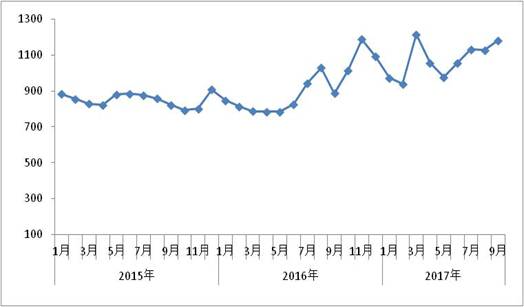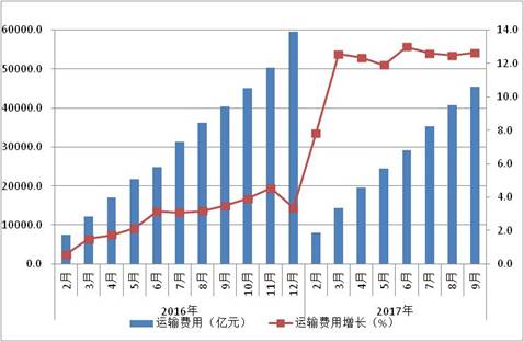 從外部環境來看,發達國家經濟復蘇態勢仍在持續,新興經濟體保持增長,全球制造業和國際貿易回暖。10月份,國際貨幣基金組織預測全球經濟增長3.6%,比4月份預測值上調0.2個百分點,比2016年加快0.4個百分點。在外部需求的帶動下,我國出口形勢有所好轉。1-9月制造業新出口訂單指數均值50.9%,較去年同期上升1.9個百分點。9月,新出口訂單指數經歷連續兩月回落后反彈回升,較上月上升0.9個百分點,達到51%以上。表明三季度外部需求在波動中趨穩。預期隨著一帶一路戰略的逐步推進,外貿形勢具備繼續回穩向好的基礎,進而帶動相關物流需求的增長。